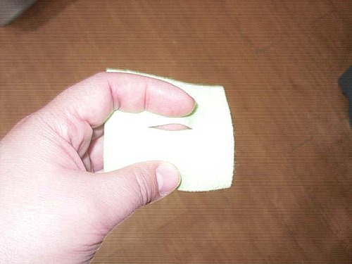 用剪刀剪開要開釦眼的位置〈釦眼洞一定要比釦子的直徑大一些〉 ↓