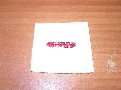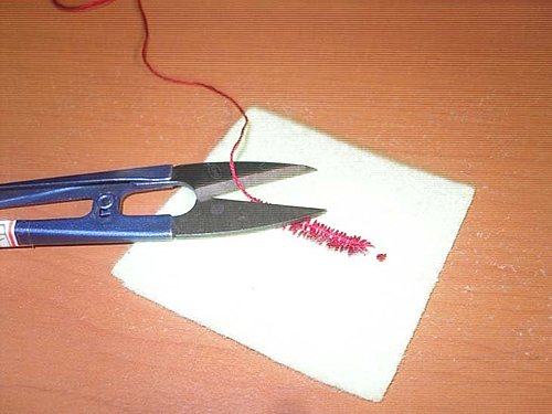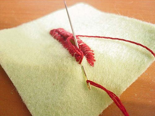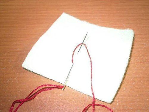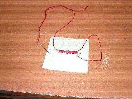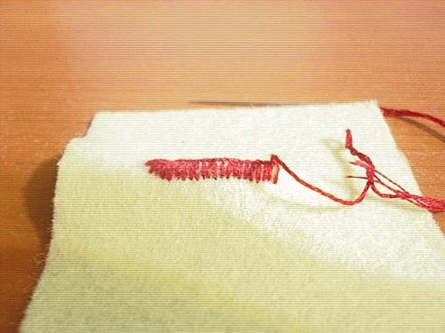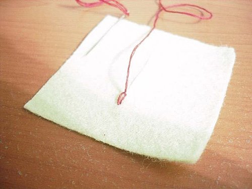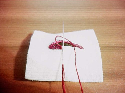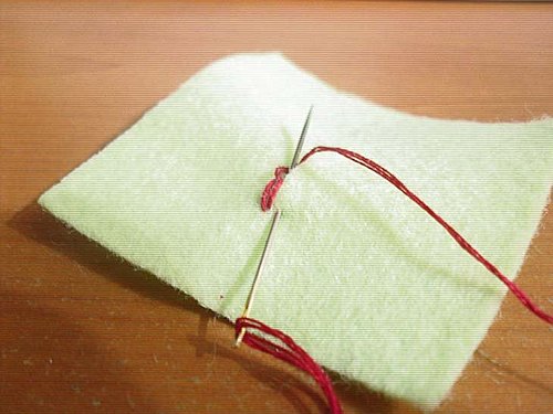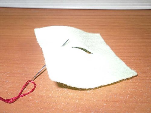以下蘋果媽媽示範手縫釦眼的技法,為了示範方便,蘋果媽媽使用顏色反差較大的布和線來表現,